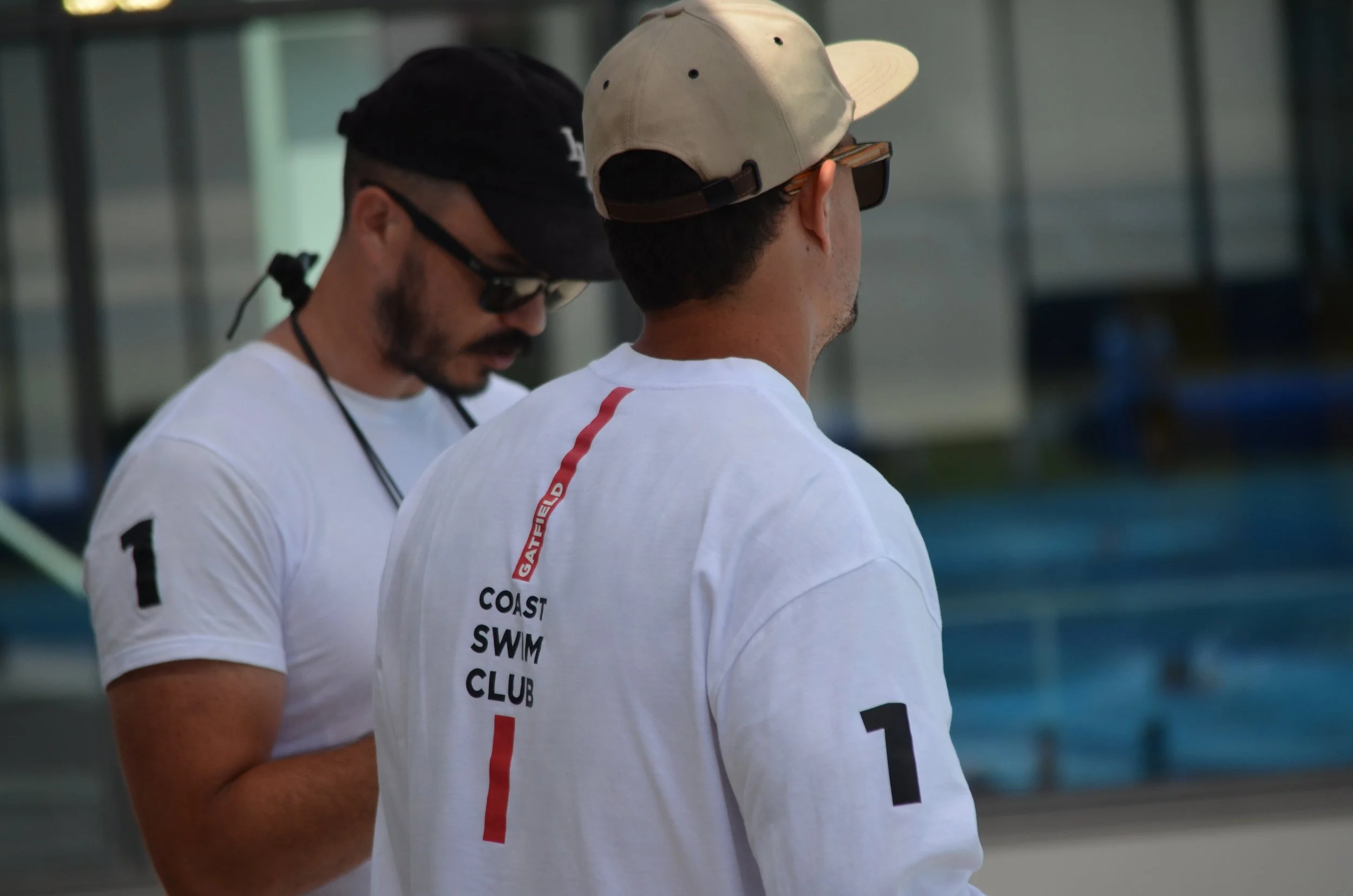 The senior elite squad of Coast Swim Club attended a training camp in Cambridge and required team shirts. I was asked by the coaches and the committee if I could design them. I kept them simple so people would want to wear them and added subtle interesting graphic elements that would still work when printed on a shirt.